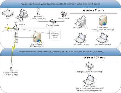 - Move off of WEP security in favor of WPA2. This is not just for better security, but because, at least for my router, you cannot use WEP if you want to support 802.11n clients. I don’t have any yet, but don’t want to be prevented from the faster speeds, either.