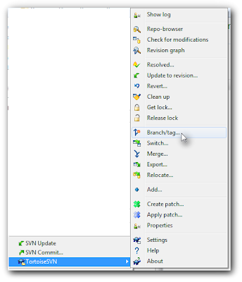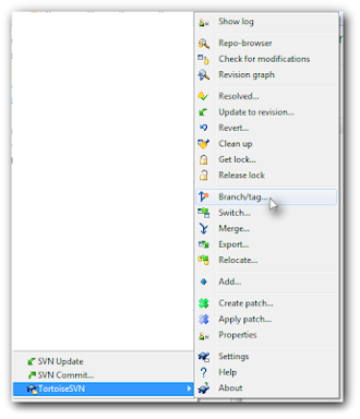 - Right-click on the directory you want to branch. Pick the Branch/Tag operation.
