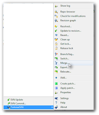 - Pick the Merge tool off the TortoiseSVN menu.