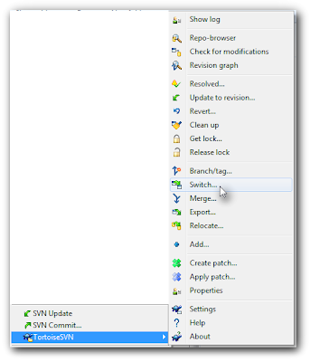 - Switch the working directory back to the trunk. This is done via the TortoiseSVN switch command.